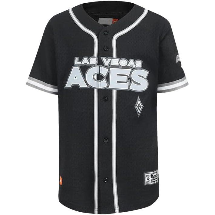 Big Boys WNBA Las Vegas Aces Classic Player Name and Number Mesh Button Down Top(Black)