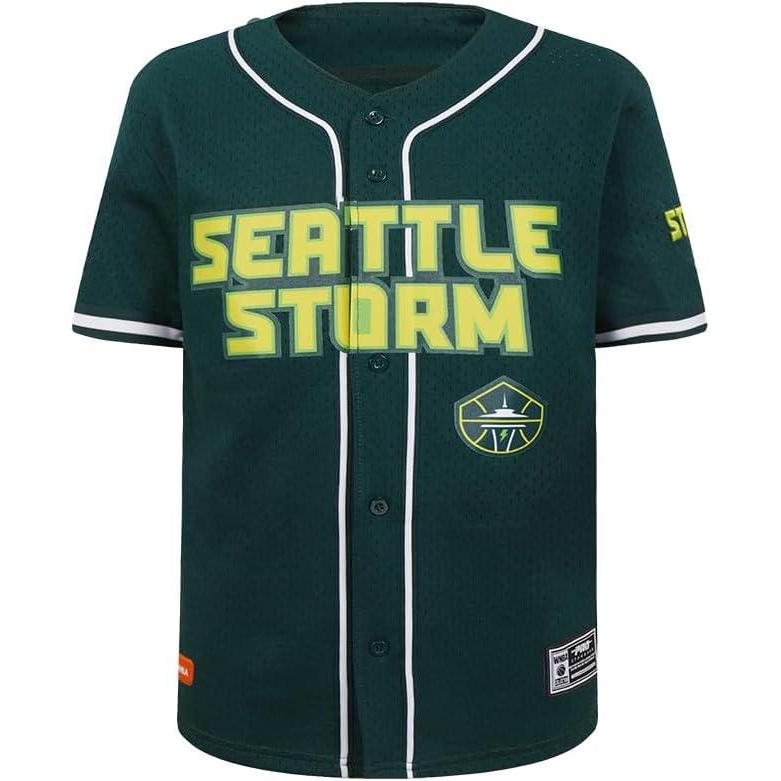 Big Boys WNBA Mesh Button Down Top(Forest Green)