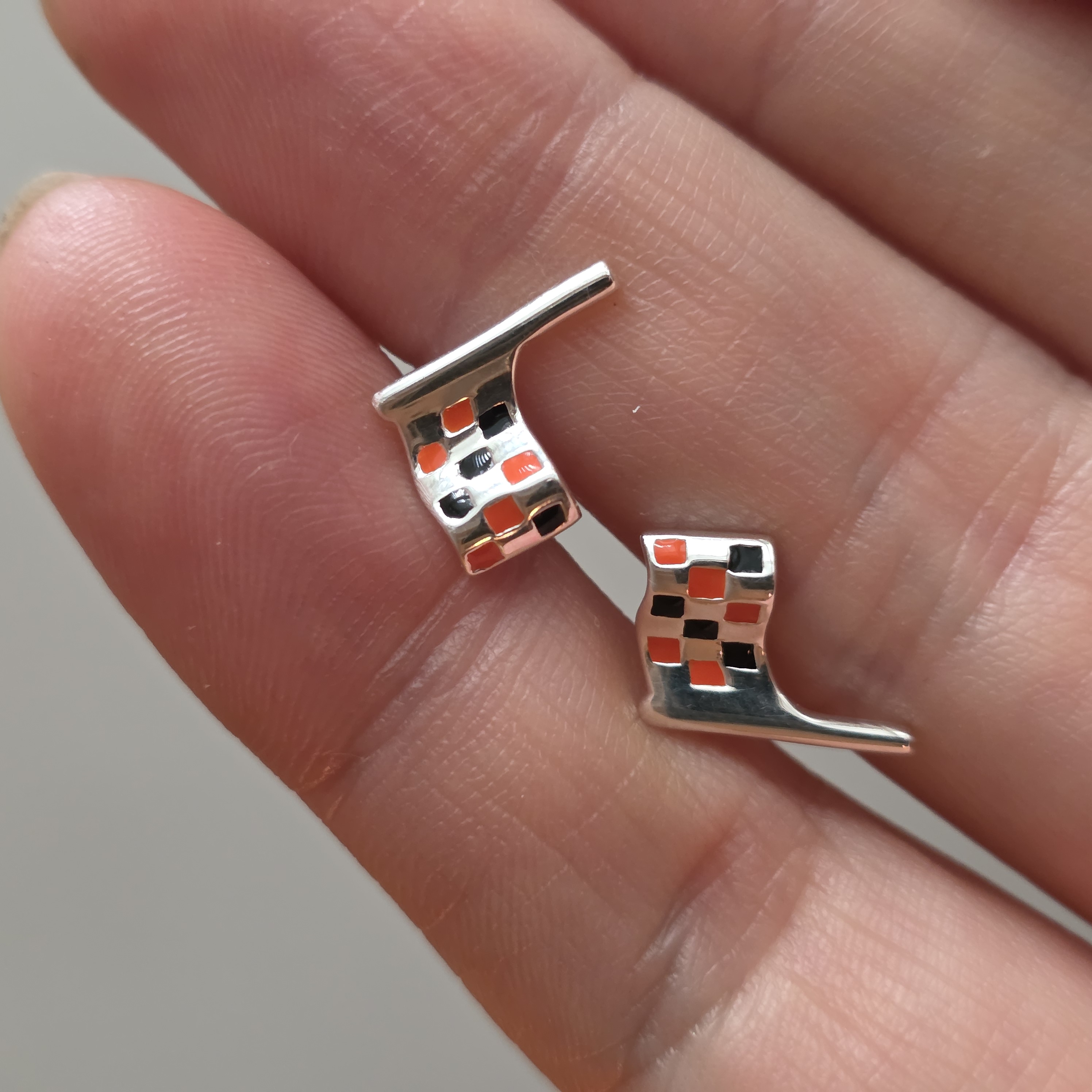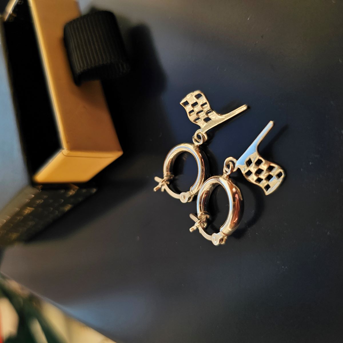 Official Honda Vintage Enamel Tag Huggie Hoops in Sterling Silver