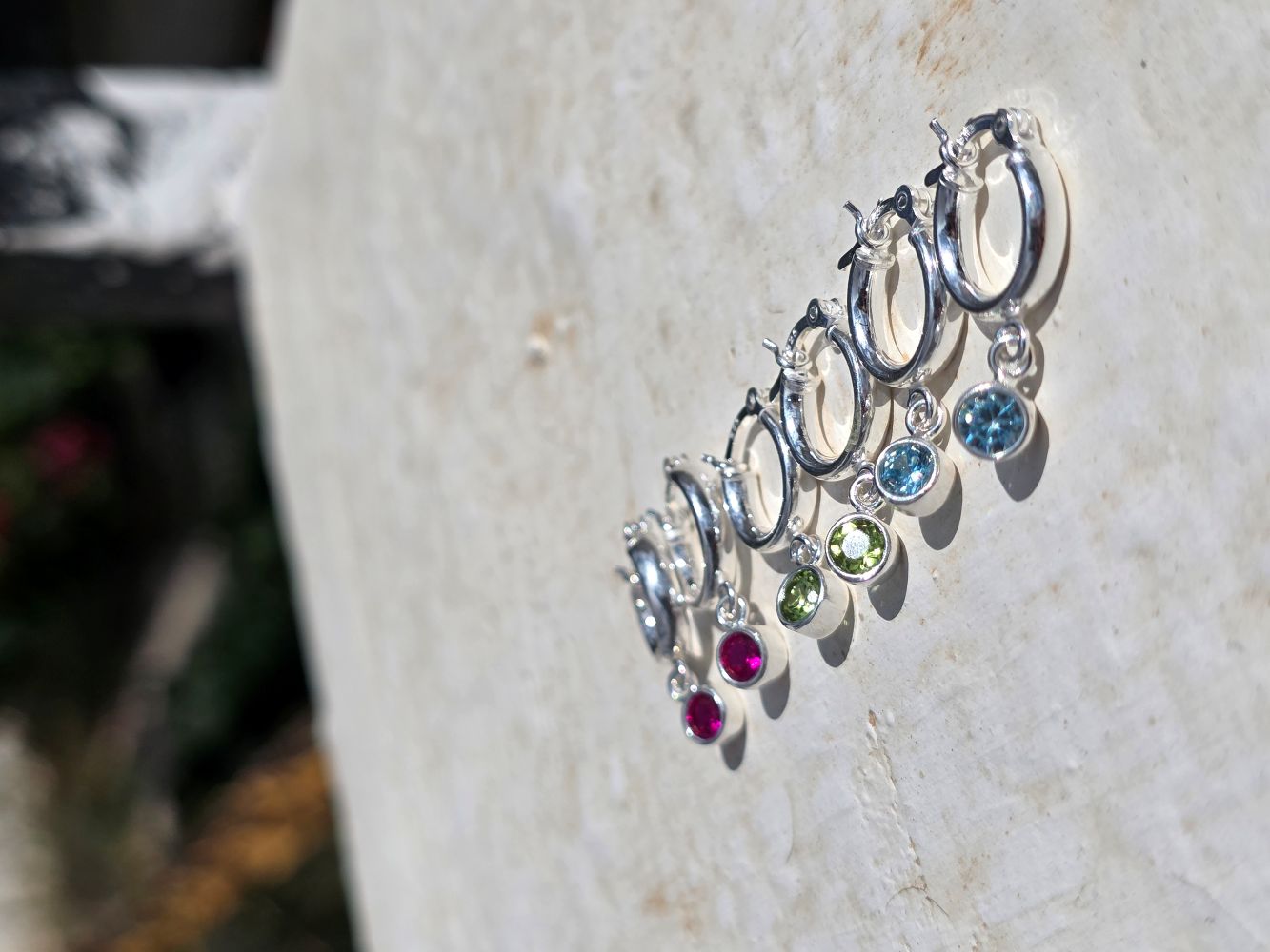 Tiny Birthstone Hoops in Sterling Silver – Pick Your Month