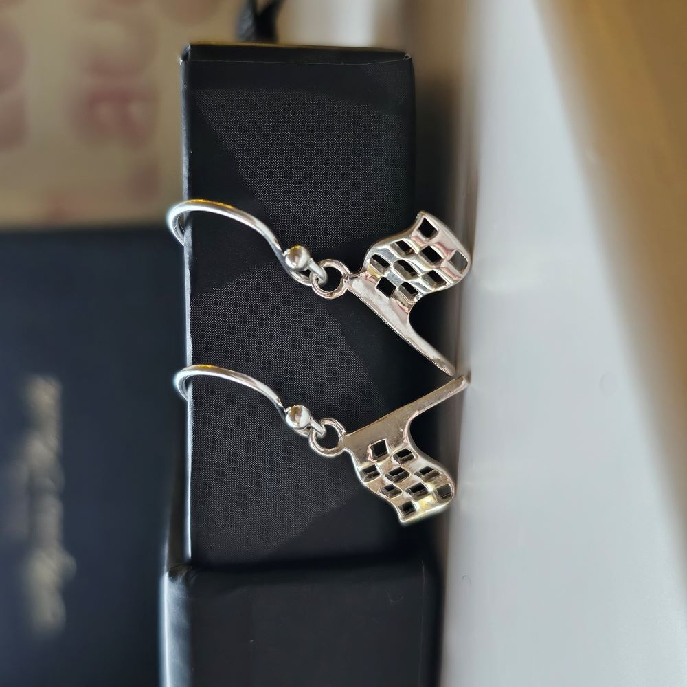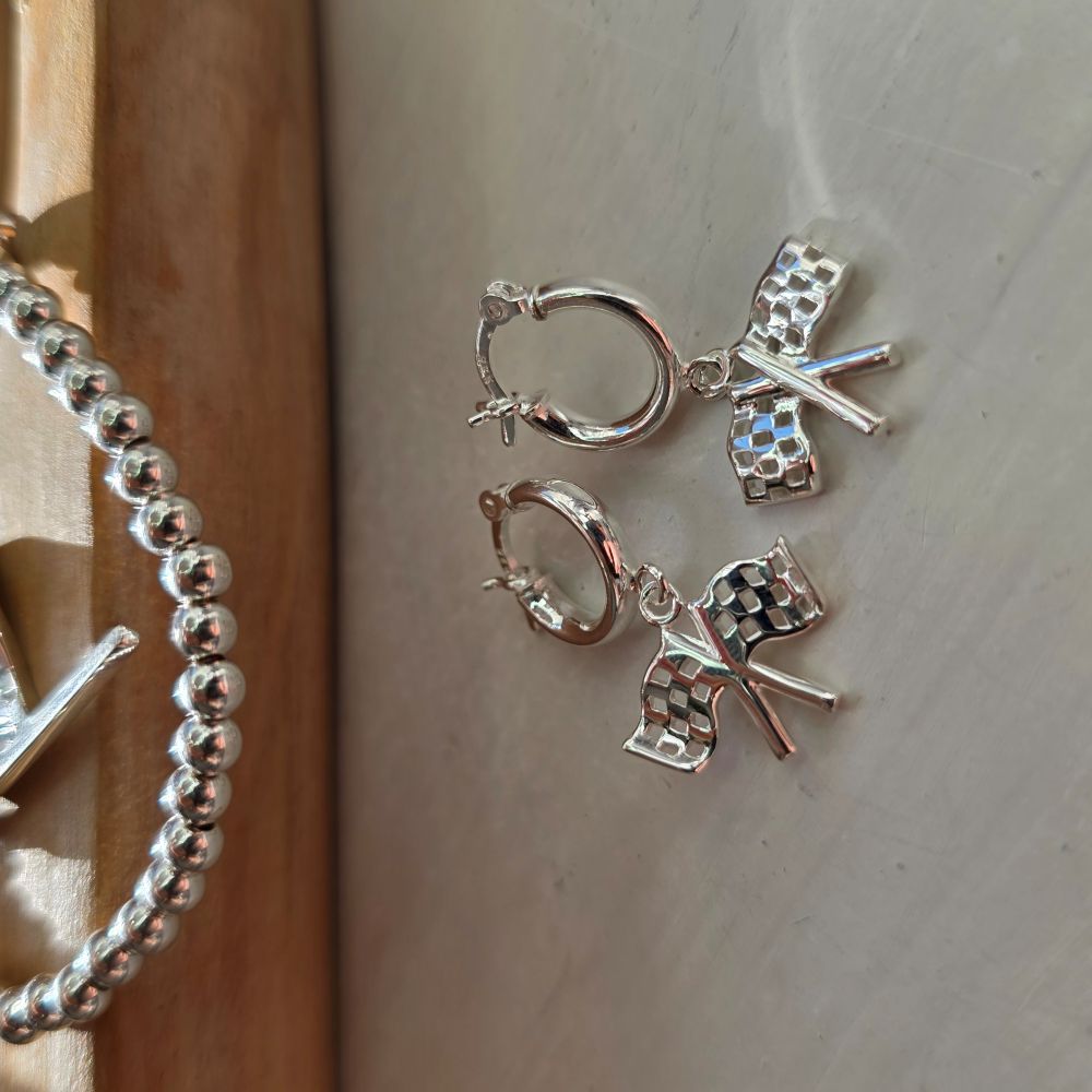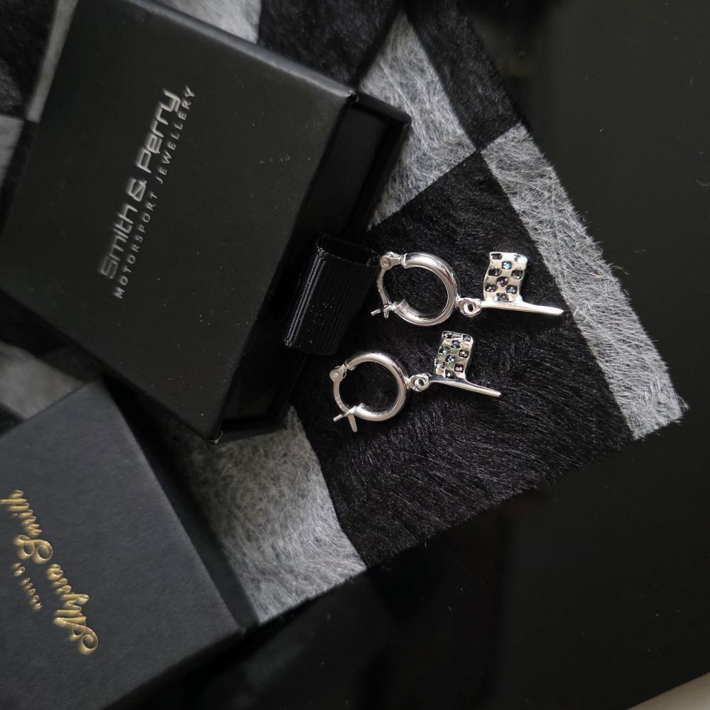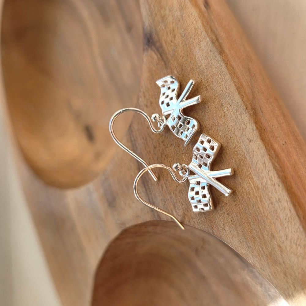 Mini Double Flag Huggie Hoops in Sterling Silver