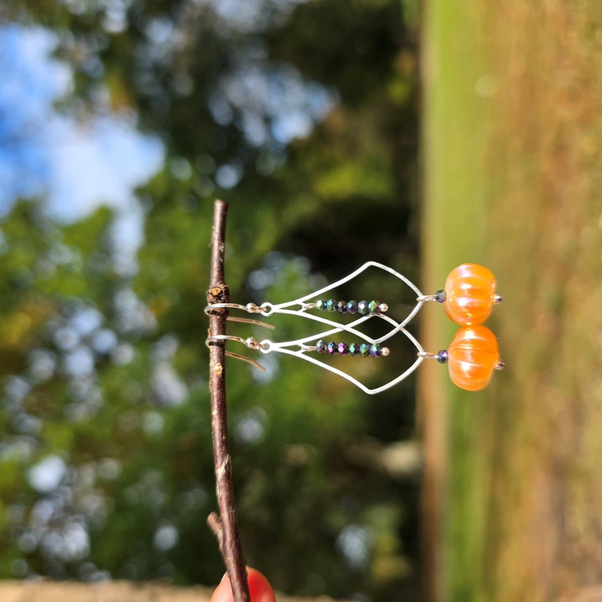Scary Little Pumpkin Blown Glass Drop Earrings in Sterling Silver