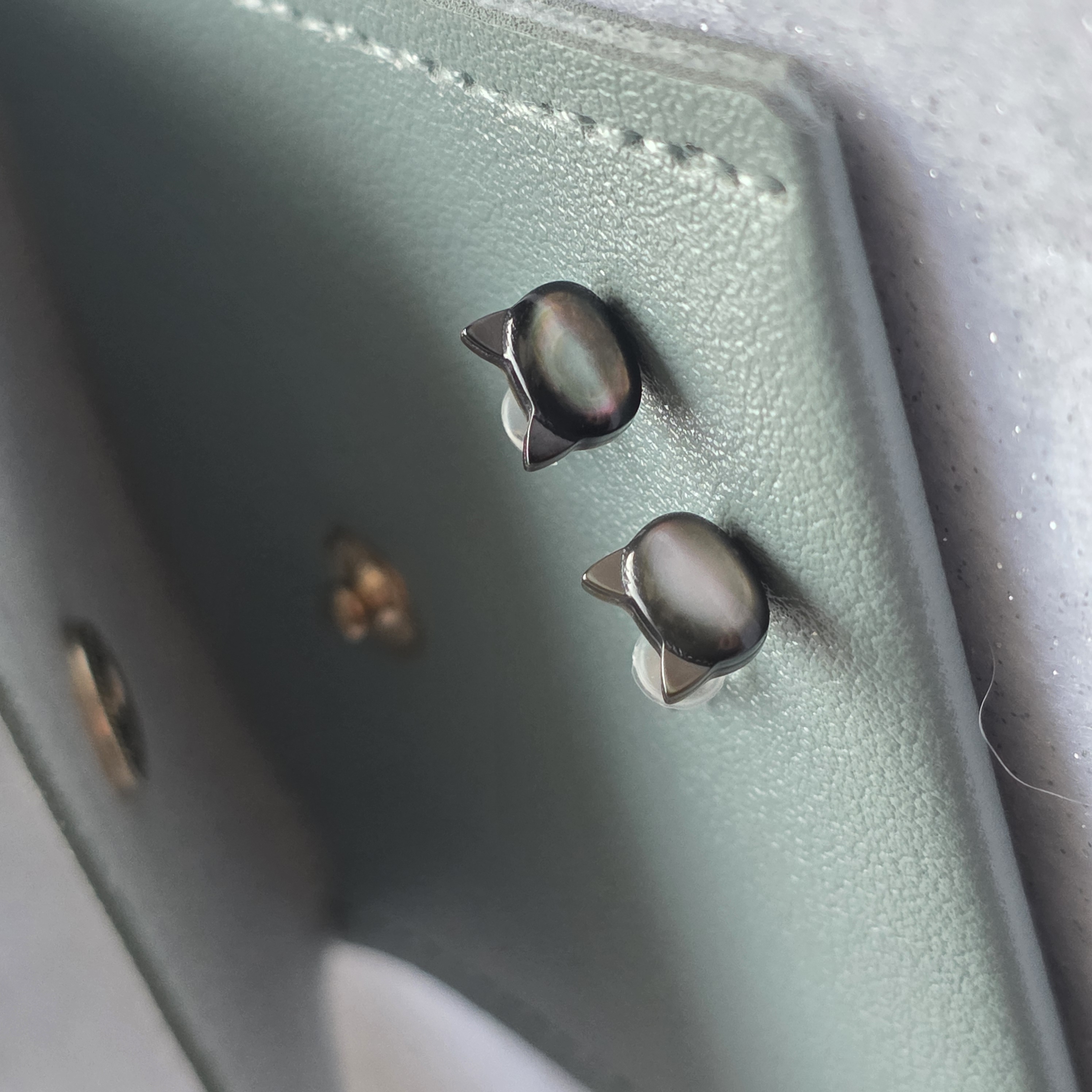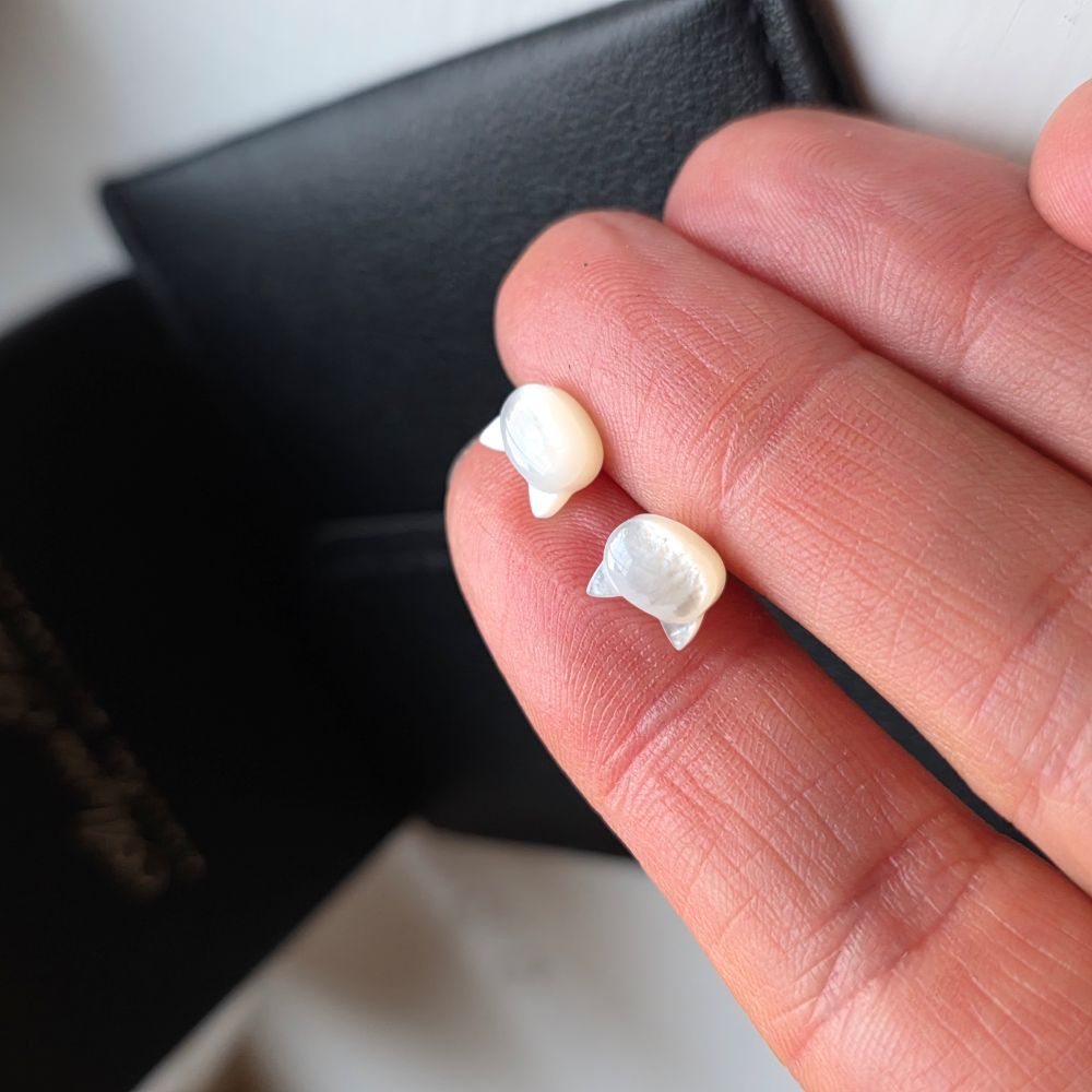 Black Cat Mother of Pearl Studs in Sterling Silver