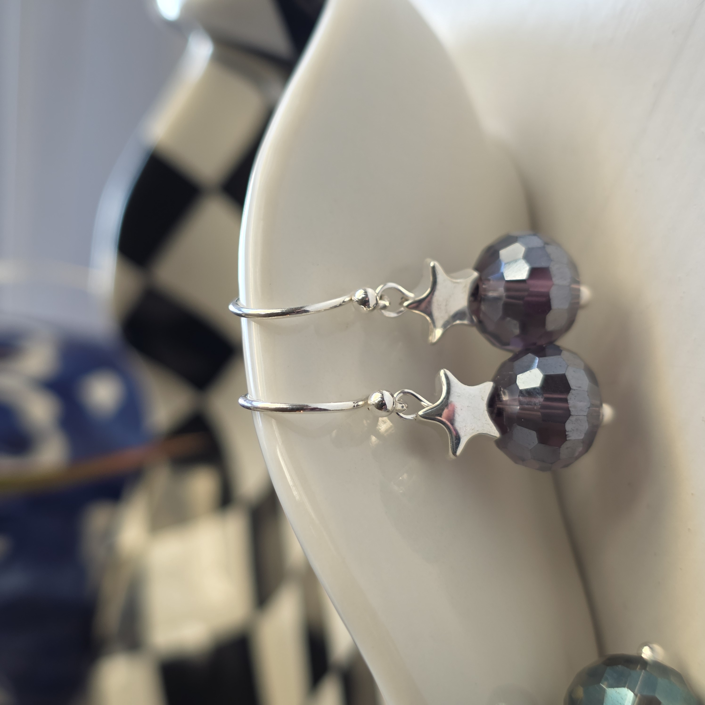 Nina Disco Stars Drop Earrings in Sterling Silver- purple edition