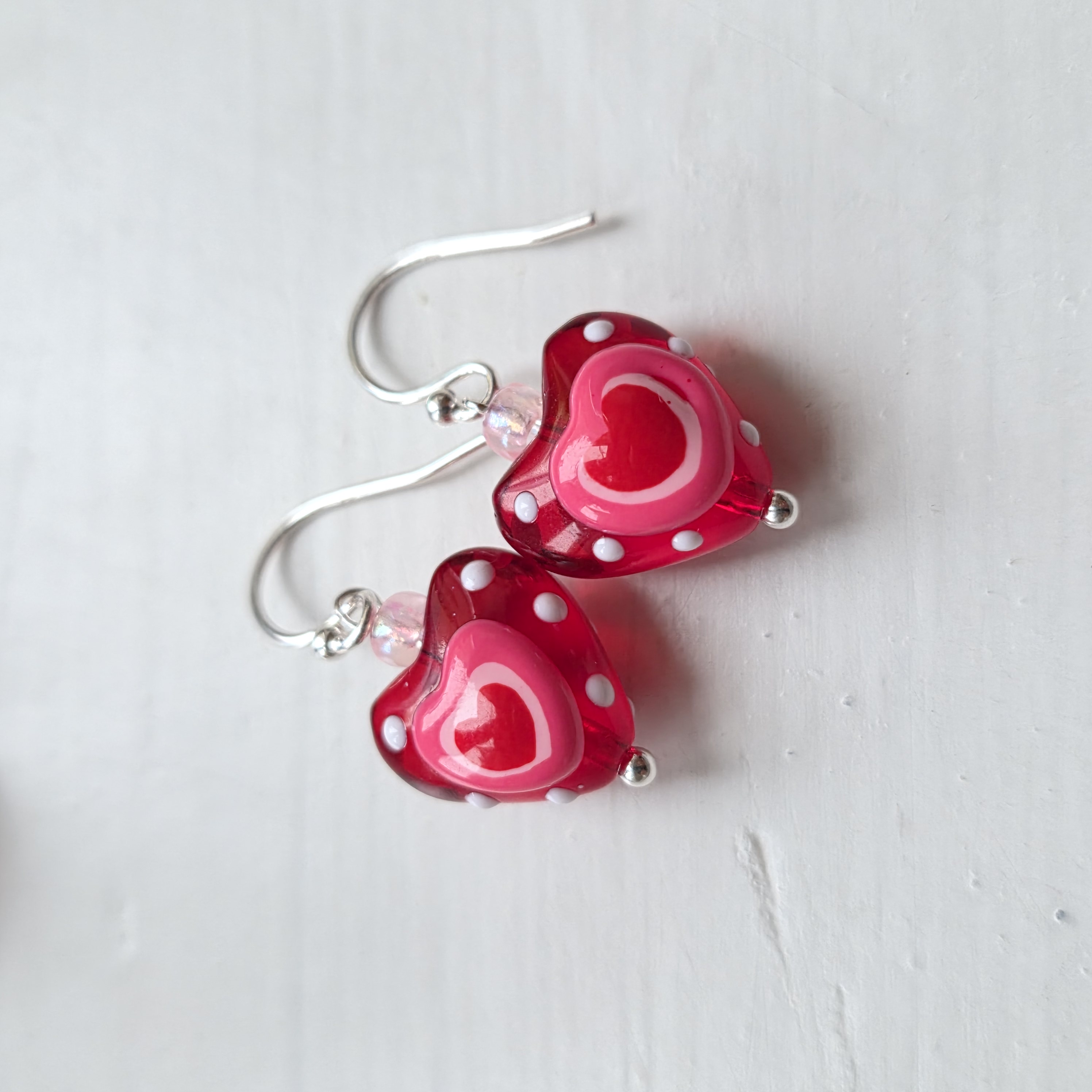Mini Glitter Enamel Heart Drop Earrings in Sterling Silver