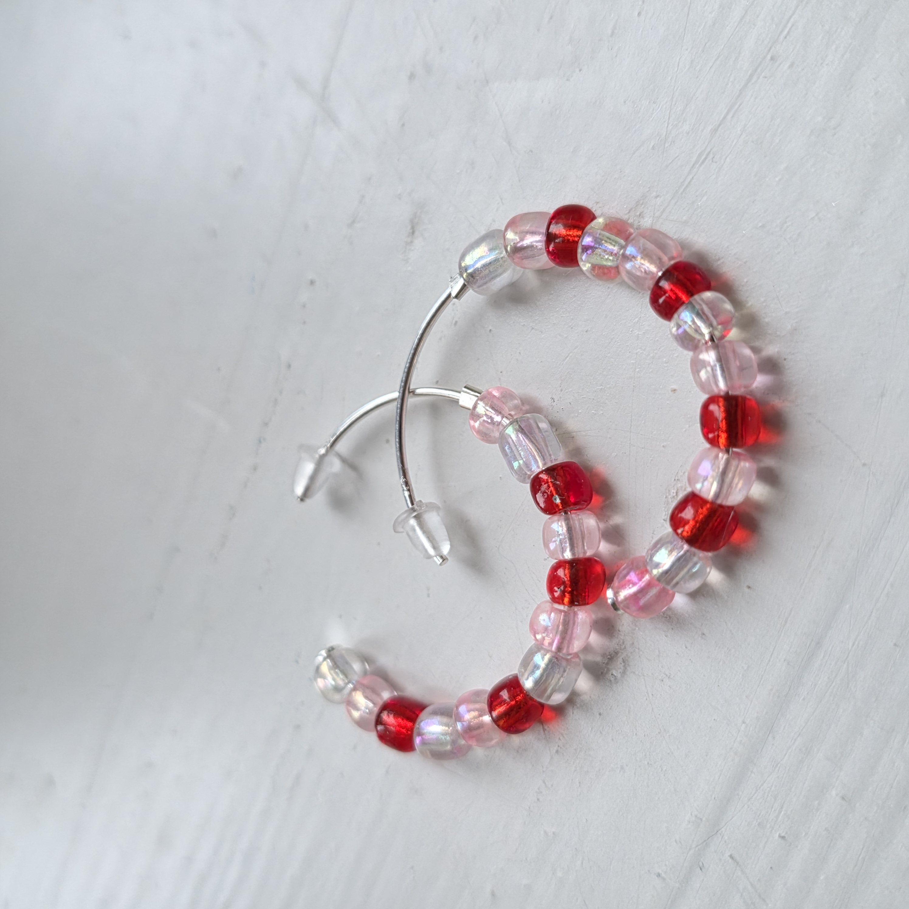 Candy Jade Love Beaded Hoop Earrings in Sterling Silver