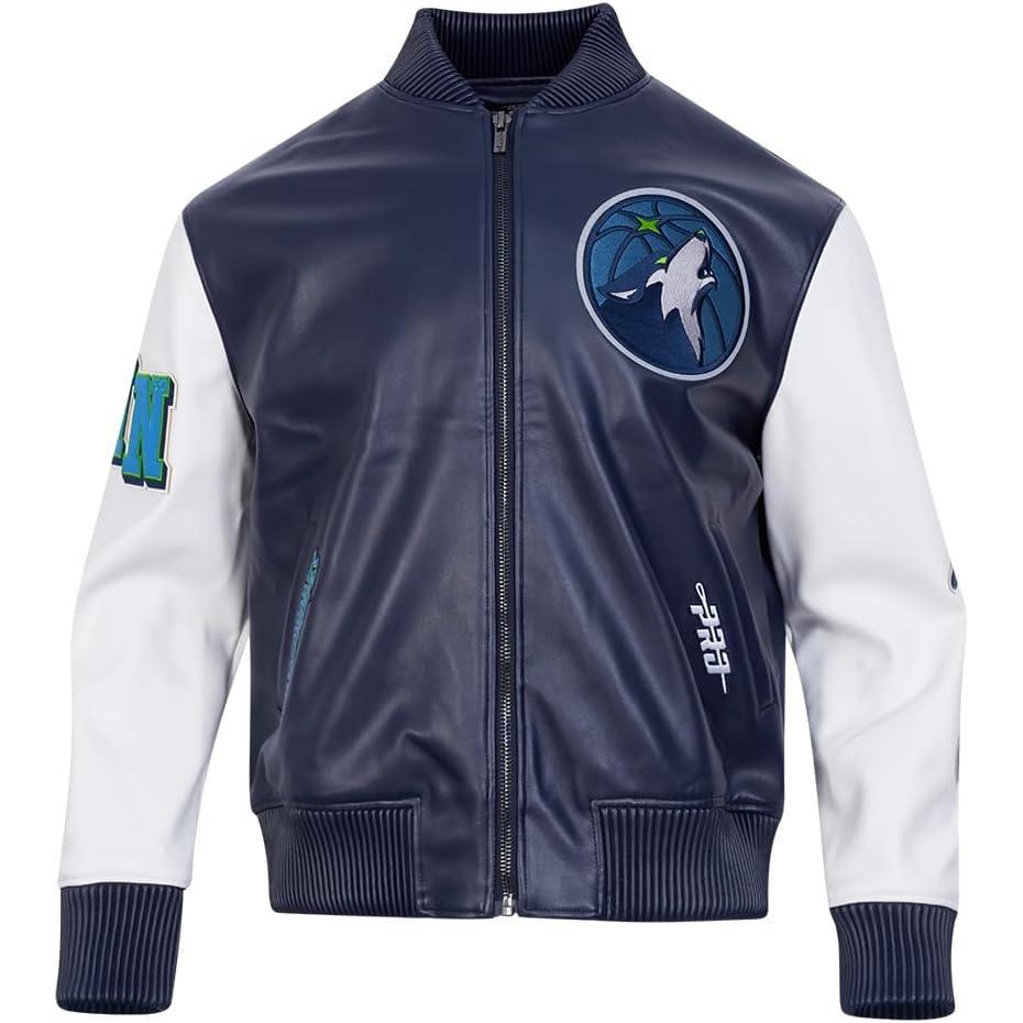 Mens NBA City Signature Leather Jacket(Midnight Navy/White)