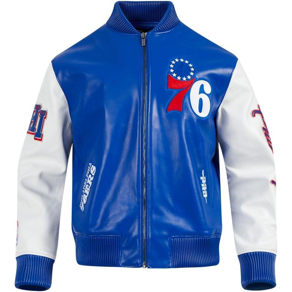 Mens NBA City Signature Leather Jacket(Royal Blue/White)
