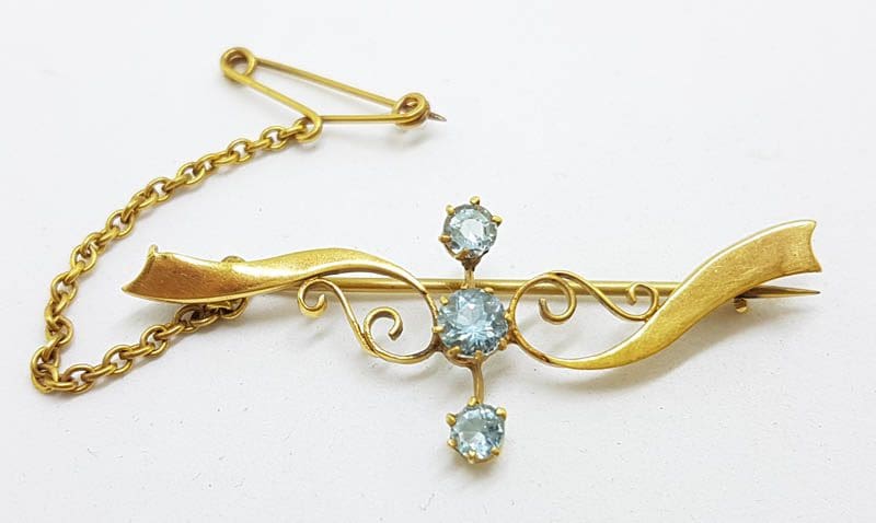 9ct Yellow Gold Aquamarine Bangle with matching Lavalier Drop Necklace /Chain – Set- Antique / Vintage