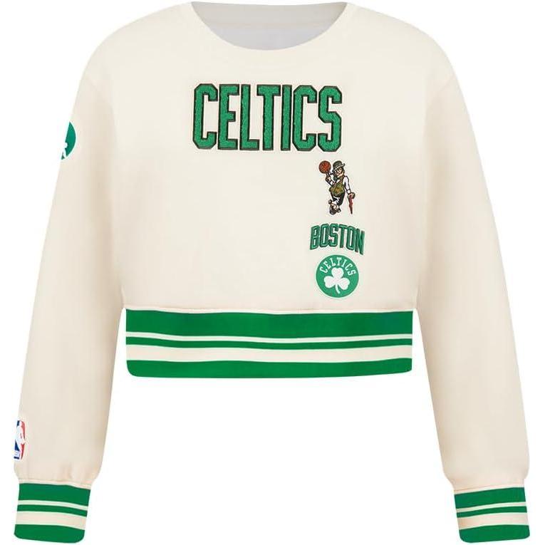 Pro Standard Big Girls NBA Retro Classics Fleece Crewneck Sweatshirt(Eggshell/ Kelly Green)