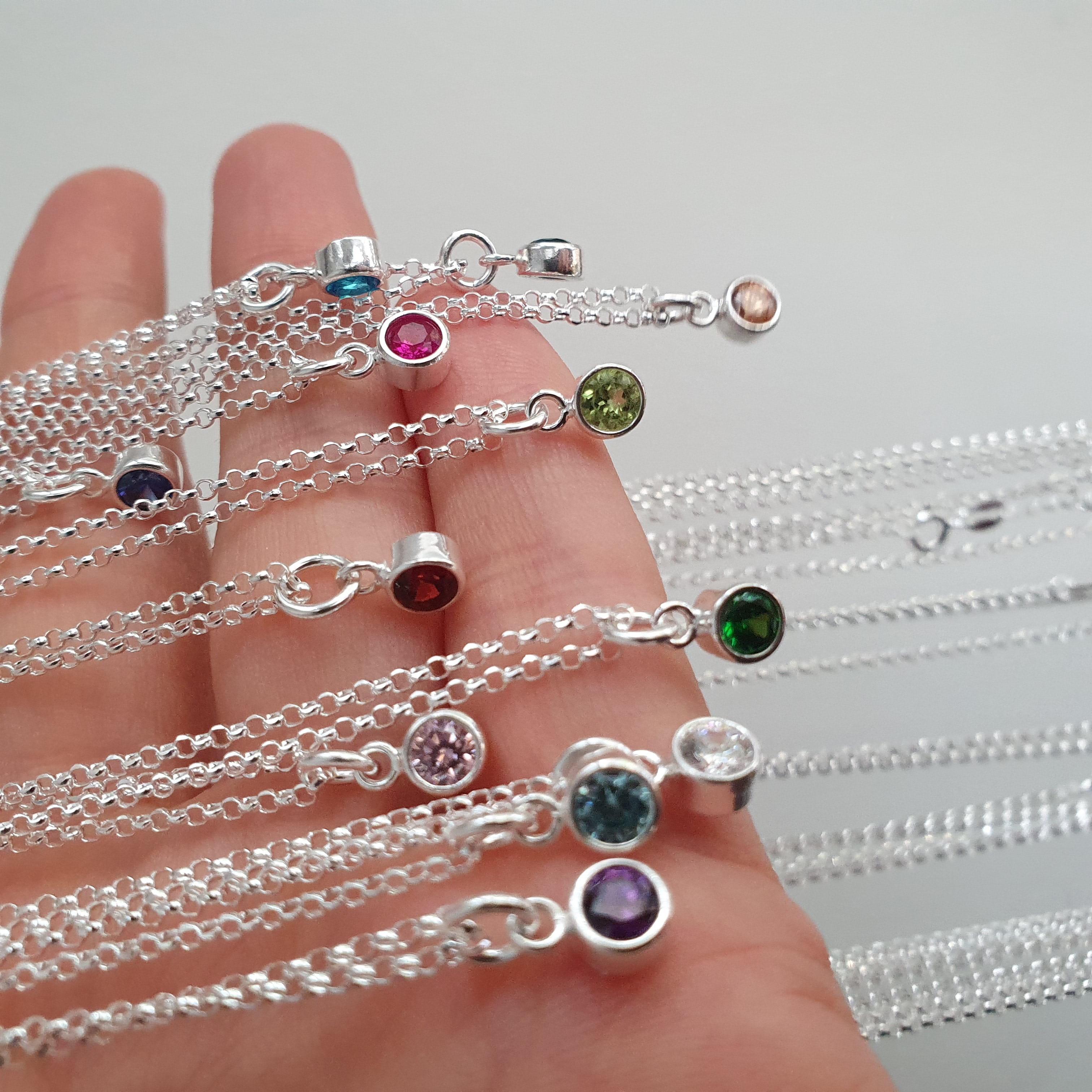 Tiny Silver Birthstone Necklace – Pick your month