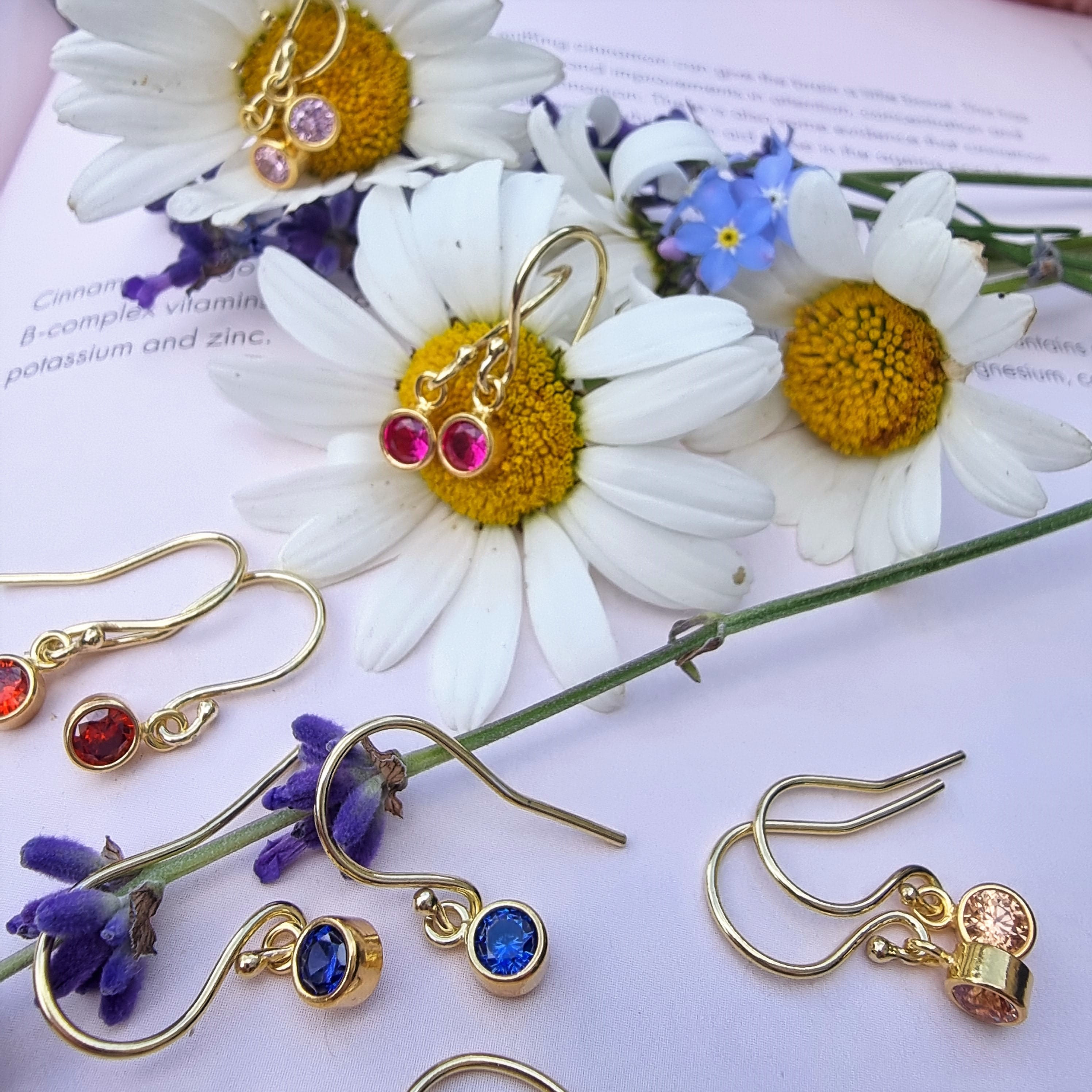 Tiny Golden Birthstone Drop Earrings