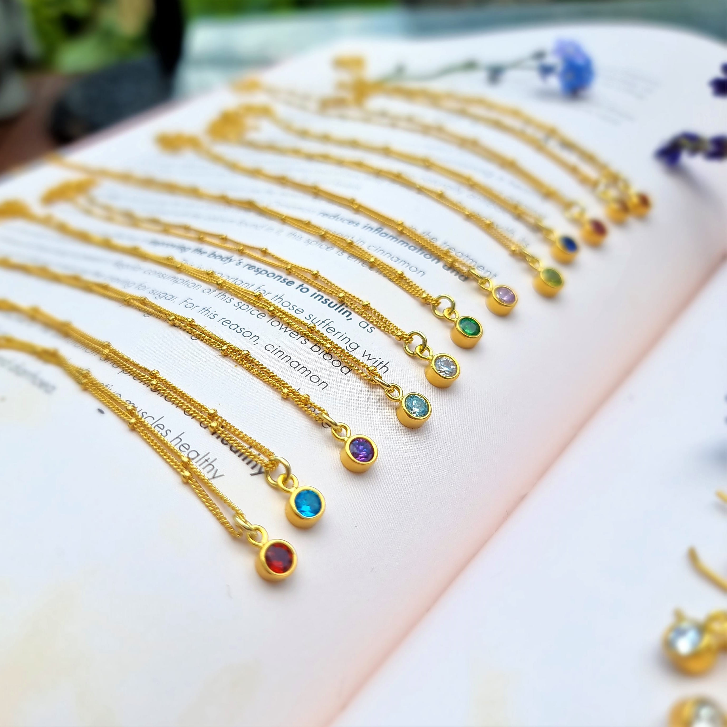 Tiny Golden Birthstone Necklace on Fancy Beaded Chain