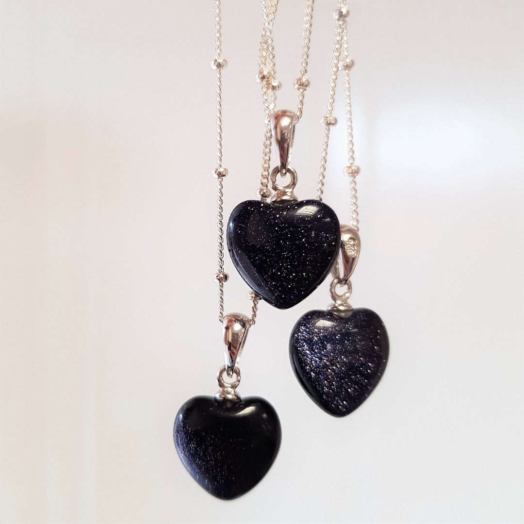 Blue Goldstone Heart Necklace in Sterling Silver