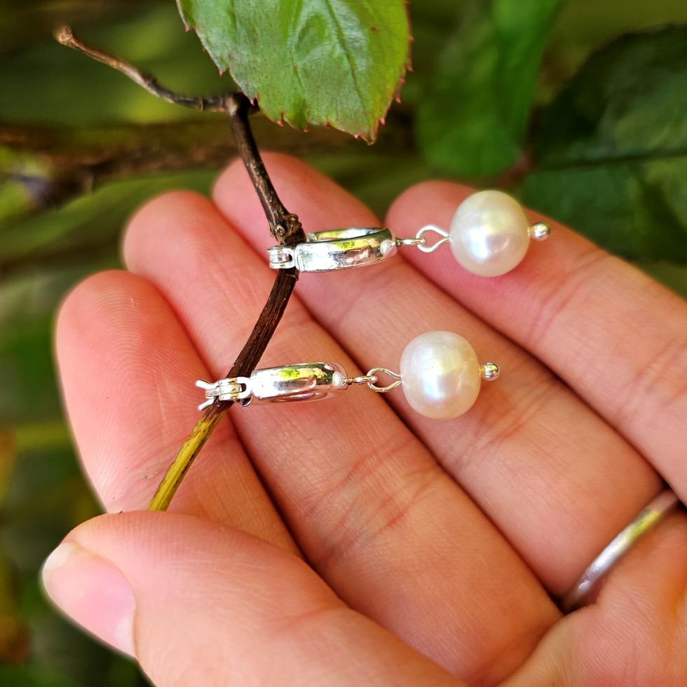 Sterling Silver Hinged Huggie Hoops with Large Potato Fresh Water Pearls