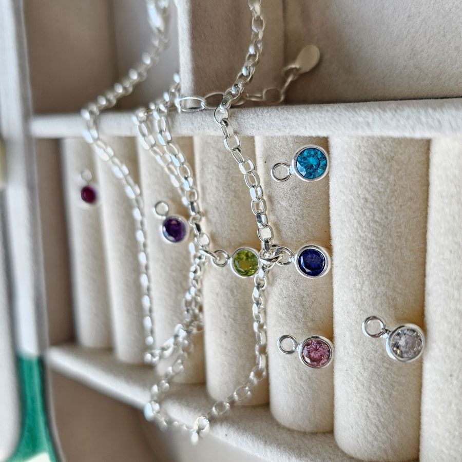 Tiny Silver Birthstone Anklet – Pick your month
